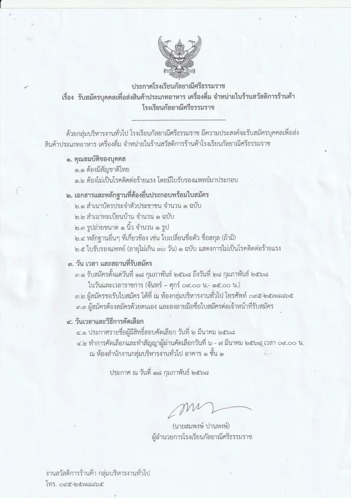 รับสมัครบุคคลเพื่อส่งสินค้าประเภทอาหาร เครื่องดื่ม จำหน่ายในร้านสวัสดิการ