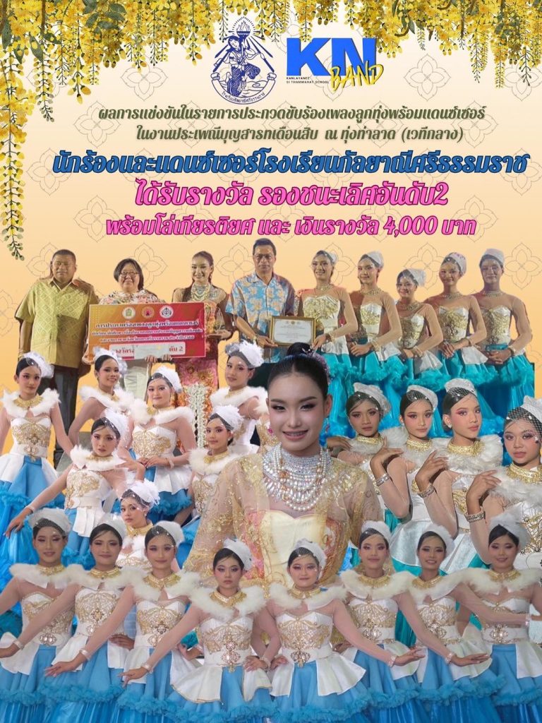 คนเก่งกัลยาณีฯ รางวัลรองชนะเลิศอันดับ 2 การประกวดแข่งขันร้องเพลงลูกทุ่งพร้อมแดนซ์เซอร์ นักเรียน นักศึกษา เนื่องในเทศกาลประเพณีบุญสารทเดือนสิบ25 กุมภาพันธ์ 256925 กุมภาพันธ์ 2026