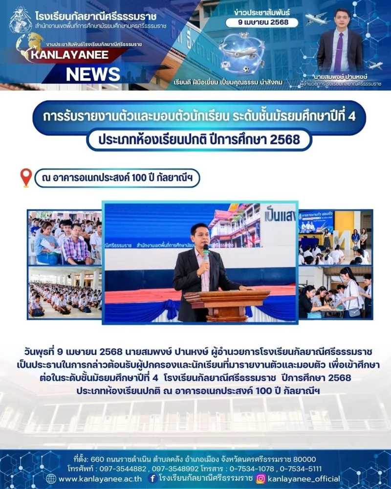 การรับรายงานตัวและมอบตัวนักเรียน ระดับชั้น ม.4 ห้องเรียนปกติ