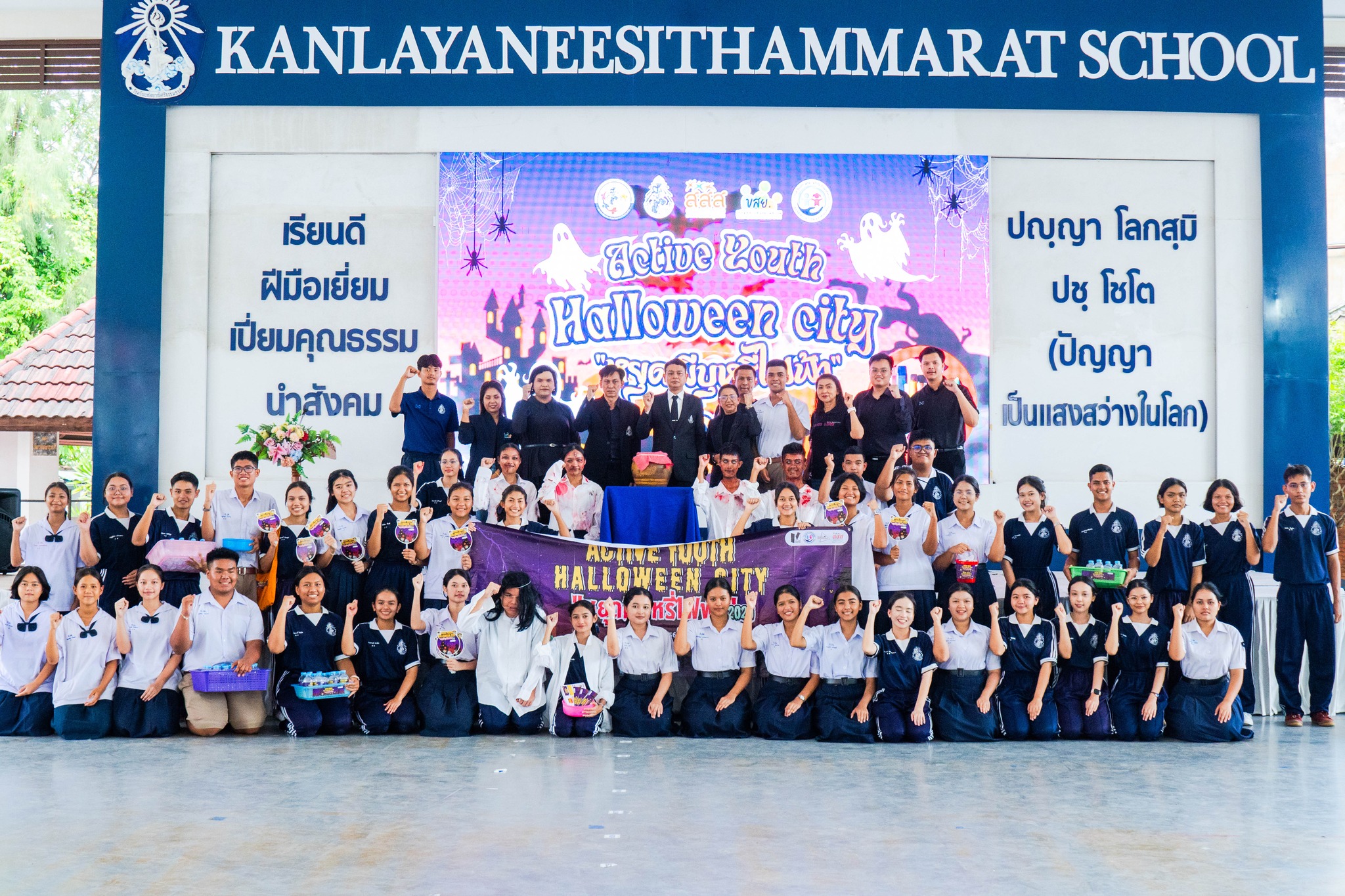 วันที่ 31 ตุลาคม 2568 เวลา 15.30 น. นายสมพงษ์ ปานหงษ์ ผู้อำนวยการโรงเรียนกัลยาณีศรีธรรมราช เป็นประธานในพิธีเปิดกิจกรรมรณรงค์เนื่องในวันฮาโลวีน ปี 2568 Active Youth “Halloween city หยุดผีบุหรี่ไฟฟ้า” จัดโดยคณะกรรมการสภานักเรียนโรงเรียนกัลยาณีศรีธรรมราช ร่วมกับสำนักงานกองทุนสนับสนุนการสร้างเสริมสุขภาพ ณ อาคารอเนกประสงค์100 ปี กัลยาณีศรีธรรมราช ทั้งนี้ คณะผู้บริหาร ครู และนักเรียน ได้ร่วมกันเดินรณรงค์ประชาสัมพันธ์เรื่องบุหรี่ไฟฟ้า จากโรงเรียนไปยังสนามหน้าเมืองนครศรีธรรมราช จังหวัดนครศรีธรรมราช เพื่อรณรงค์ลดการใช้บุหรี่ไฟฟ้าในกลุ่มเด็กและเยาวชน พร้อมสร้างความตระหนักถึงอันตรายที่แท้จริงของบุหรี่ไฟฟ้า