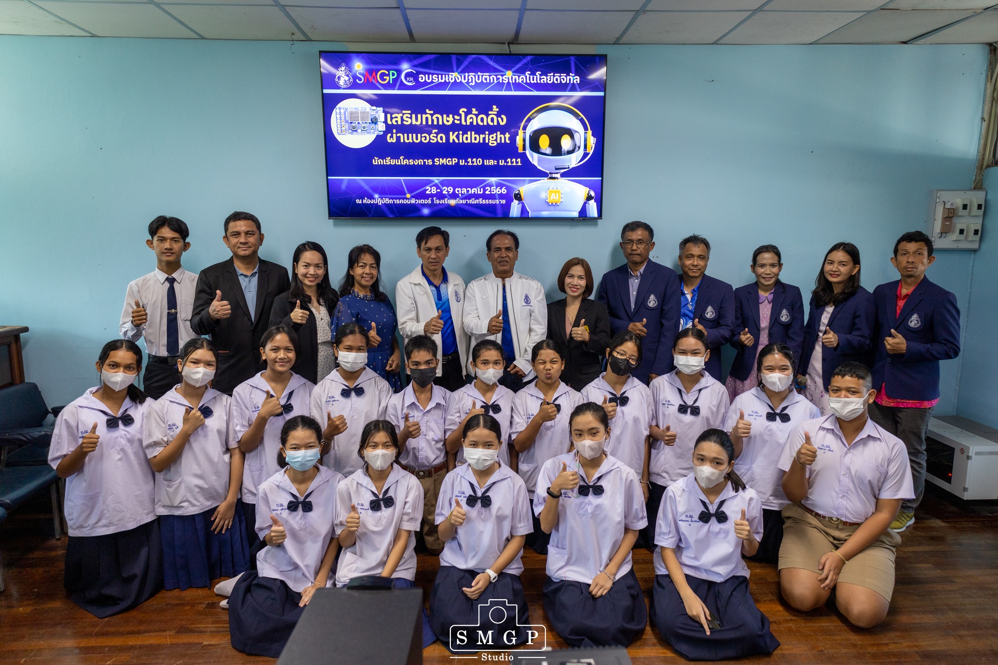 กิจกรรมอบรมเสริมทักษะโค้ดดิ้ง ผ่านบอร์ด Kidbright ของนักเรียนโครงการ SMGP ม.๑๑๐ และ ม.๑๑๑ ระหว่างวันที่ ๒๘ – ๒๙ ตุลาคม ๒๕๖๖