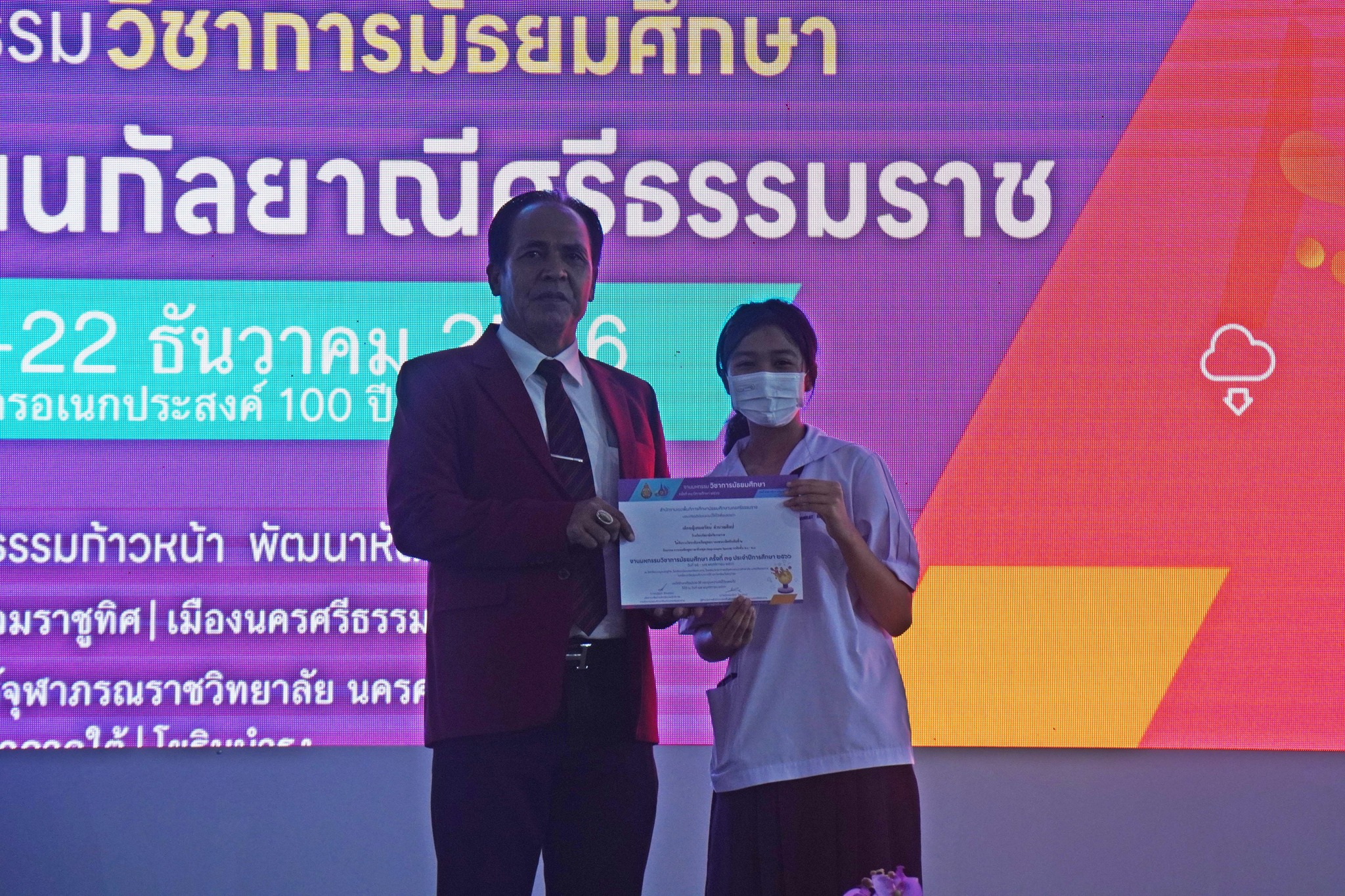 วันที่ ๒๒ ธันวาคม ๒๕๖๖ เวลา ๐๘.๐๐ น. นายสง่า นาวารัตน์ ผู้อำนวยการโรงเรียนกัลยาณีศรีธรรมราช เป็นประธานในการมอบเกียรติบัตรแก่นักเรียนที่ได้รับรางวัลการแข่งขัน กลุ่มสาระการเรียนรู้ภาษาต่างประเทศ งานมหกรรมวิชาการมัธยมศึกษา ครั้งที่ ๓๑ ปีการศึกษา ๒๕๖๖ โดยมีคณะผู้บริหาร และครูกลุ่มสาระการเรียนรู้ภาษาต่างประเทศ ร่วมเป็นเกียรติ ณ อาคารอเนกประสงค์ ๑๐๐ ปี กัลยาณีฯ