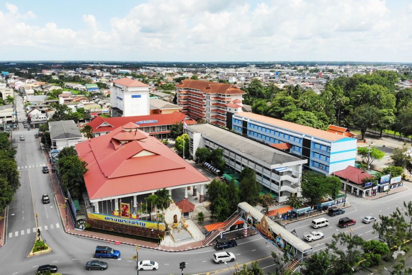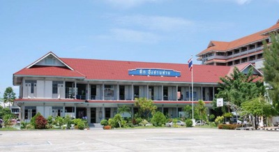 พ.ศ. 2480 เริ่มก่อสร้างอาคารเรียนหลังแรก พระยาสุราษฎร์ธานี ข้าหลวงประจำจังหวัด ขุนบูรณวาท ธรรมการจังหวัดและหลวงอถรรปกรณ์โกศล อัยการจังหวัด ได้ขอความอนุเคราะห์จากคหบดีเจ้าของเหมืองแร่ที่อำเภอร่อนพิบูลย์ ชื่อนายอึ่งค่ายท่าย แซ่อึ่ง บริจาคเงินเพื่อสร้างอาคารเรียนให้โรงเรียนสตรีประจำจังหวัด ซึ่งท่านได้บริจาคเป็นจำนวน 30,000 บาท สมทบกับเงินงบประมาณของกระทรวงธรรมการ 12,000 บาท รวมค่าก่อสร้าง 42,000 บาท การก่อสร้างแล้วเสร็จในปี พ.ศ. 2482 อาคารเรียนหลังนี้ชื่อว่า “อาคารอึ่งค่ายท่าย” เป็นอาคารเรียนหลังแรกของโรงเรียนที่ภูมิฐานสง่างาม มาตราบจนปัจจุบัน