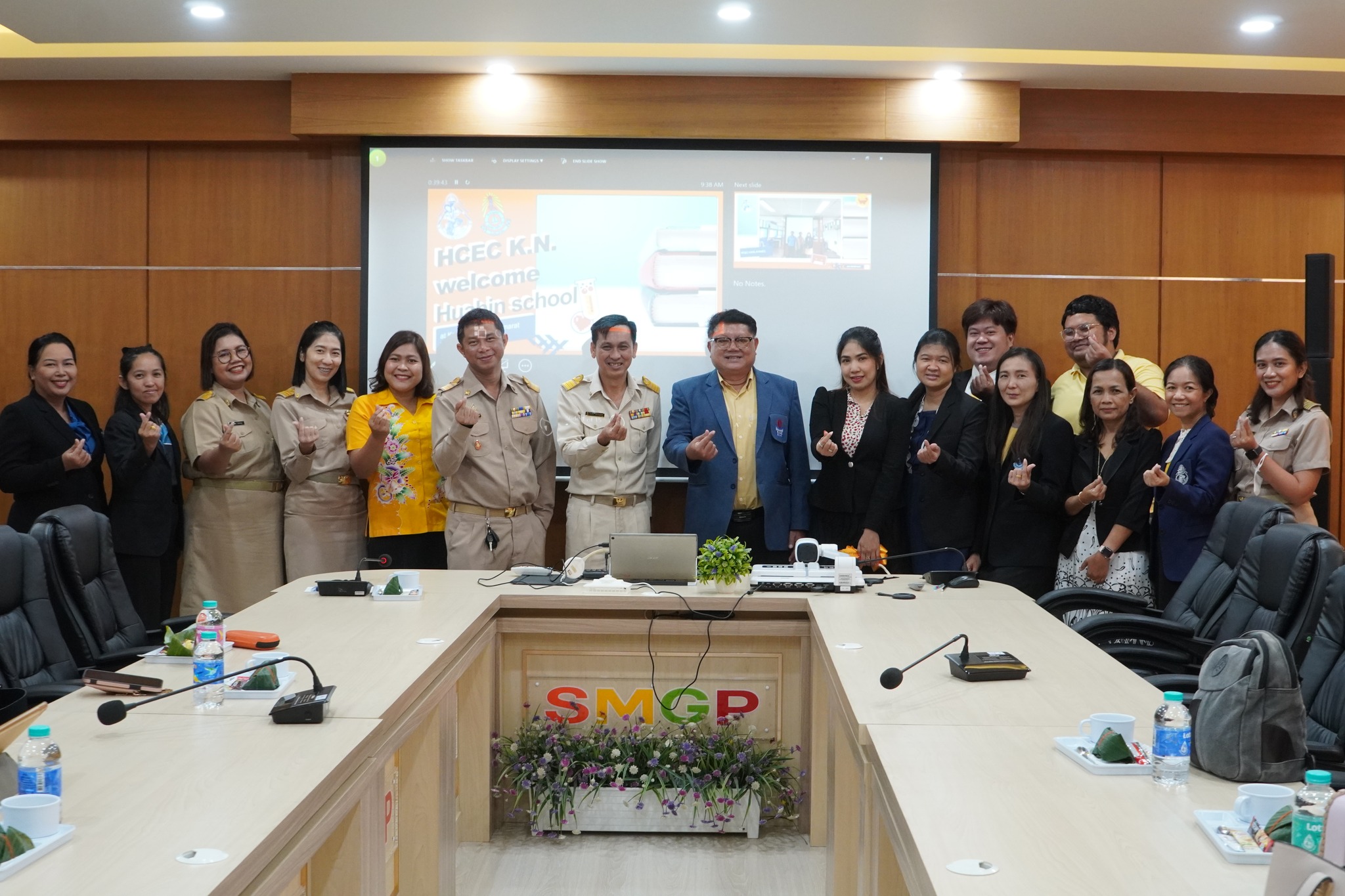 วันที่ ๒๗ พฤศจิกายน ๒๕๖๖ เวลา ๐๙.๐๐ น. นายสง่า นาวารัตน์ ผู้อำนวยการโรงเรียนกัลยาณีศรีธรรมราช มอบหมายให้นายเรืองศักดิ์ สุพงษ์วิบูลพันธ์ รองผู้อำนวยการกลุ่มบริหารงานวิชาการ เป็นประธานในการกล่าวต้อนรับผู้บริหาร และคณะครู จากโรงเรียนหัวหิน จังหวัดประจวบคีรีขันธ์ เนื่องในโอกาสศึกษาดูงานศูนย์พัฒนาศักยภาพบุคคลเพื่อความเป็นเลิศ (HCEC) โรงเรียนกัลยาณีศรีธรรมราช ทั้งนี้ มีนายเอกรัฐ เพชรรักษ์ หัวหน้าศูนย์ฯ และคณะครูกลุ่มสาระการเรียนรู้ภาษาต่างประเทศ ร่วมกิจกรรมแลกเปลี่ยนเรียนรู้ ณ ห้องประชุม SMGP โรงเรียนกัลยาณีศรีธรรมราช