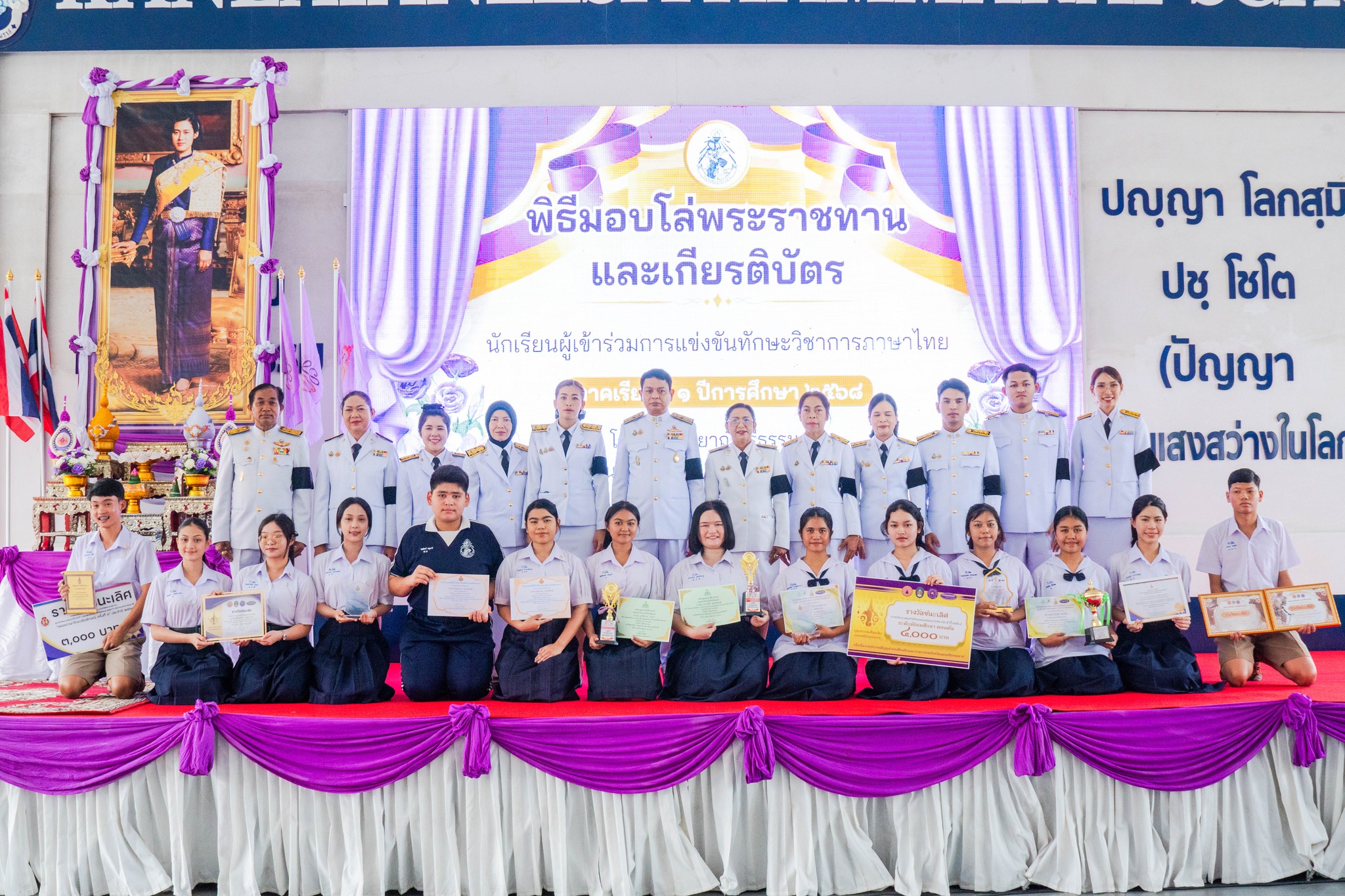 วันที่ 6 พฤศจิกายน 2568 เวลา 08.00 น. นายสมพงษ์ ปานหงษ์ ผู้อำนวยการโรงเรียนกัลยาณีศรีธรรมราช เป็นประธานในพิธีมอบโล่รางวัลพระราชทาน สมเด็จพระกนิษฐาธิราชเจ้า กรมสมเด็จพระเทพรัตนราชสุดาฯ สยามบรมราชกุมารี “เพชรภาษาไทยวลัยลักษณ์ ครั้งที่ 3“ ประจำปี 2568 จัดโดยสำนักวิชาศิลปศาสตร์ มหาวิทยาลัยวลัยลักษณ์ รวมถึงรายการการแข่งขันทักษะทางภาษาไทยด้านอื่น ๆ ที่กลุ่มสาระการเรียนรู้ภาษาไทยส่งเข้าร่วมแข่งขัน ทั้งในระดับเขตพื้นที่ ระดับจังหวัด ระดับภาค รวมถึงระดับชาติ