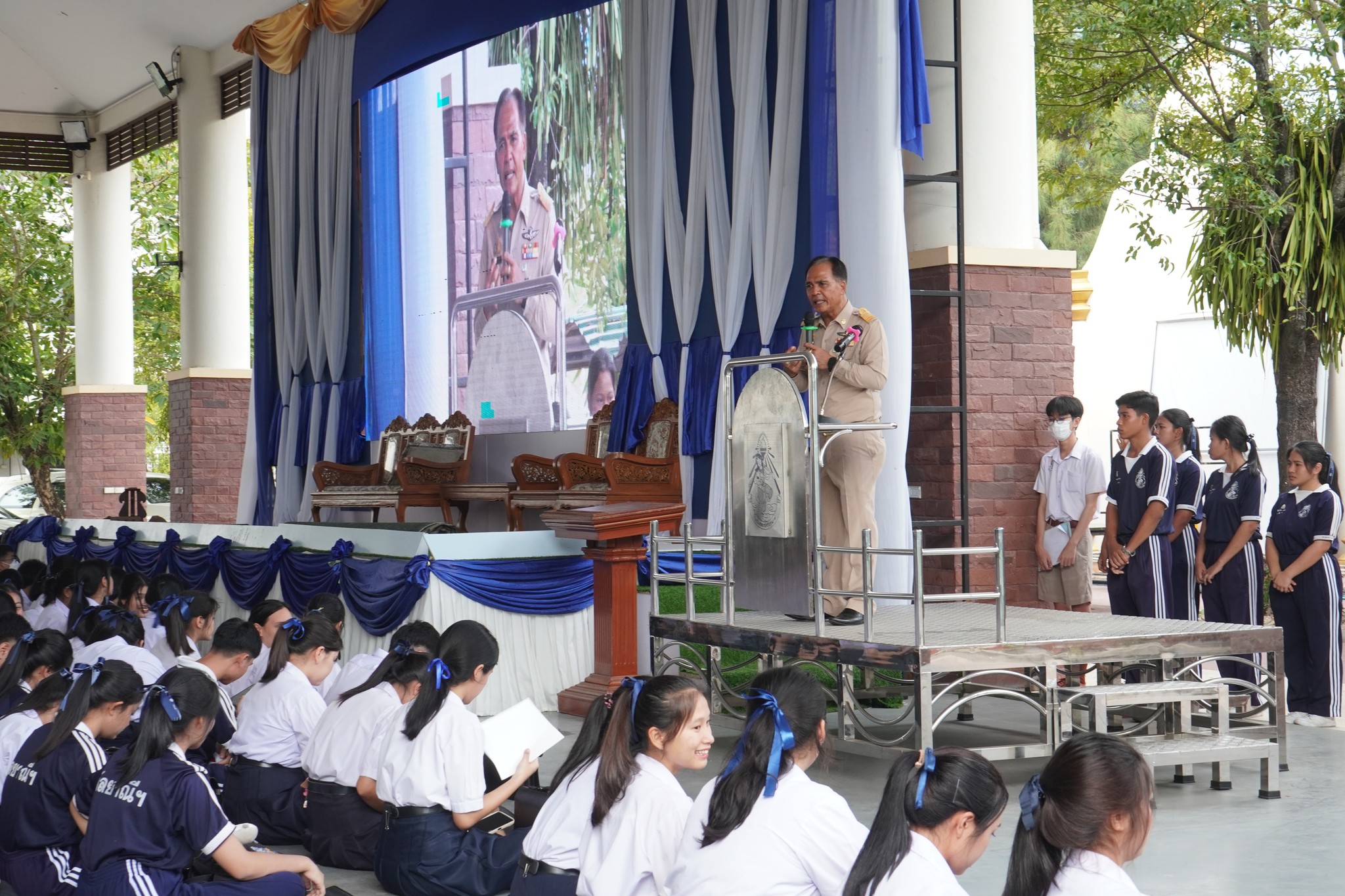 วันที่ ๗ พฤษภาคม ๒๕๖๗ เวลา ๐๘.๐๐ น. นายสง่า นาวารัตน์ ผู้อำนวยการโรงเรียนกัลยาณีศรีธรรมราช กล่าวต้อนรับและให้โอวาทนักเรียน เนื่องในโอกาสเปิดภาคเรียนที่ ๑ ปีการศึกษา ๒๕๖๗ ณ อาคารอเนกประสงค์ ๑๐๐ ปี กัลยาณีฯ