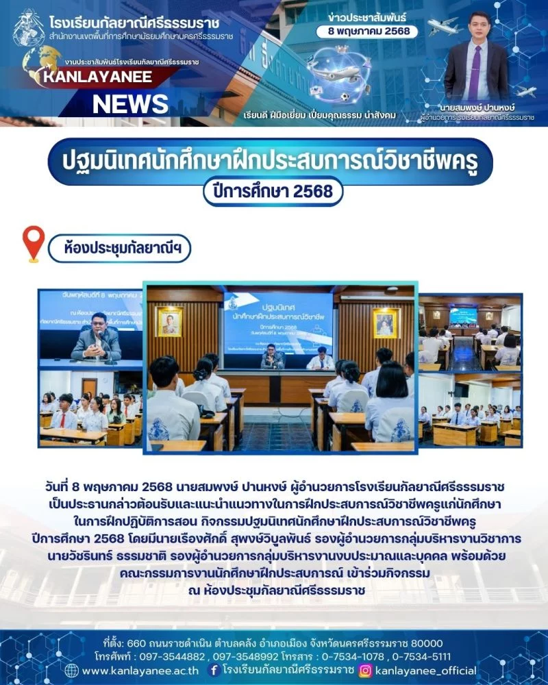 ปฐมนิเทศนักศึกษาฝึกประสบการณ์วิชาชีพครู ปีการศึกษา 2568