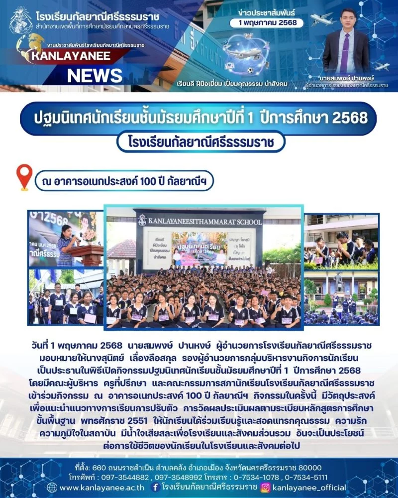 ปฐมนิเทศนักเรียนมัธยมศึกษาปีที่ 1 ปีการศึกษา 2568