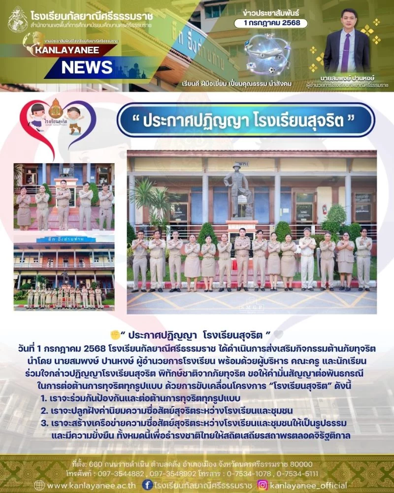 ประกาศปฏิญญา โรงเรียนสุจริต