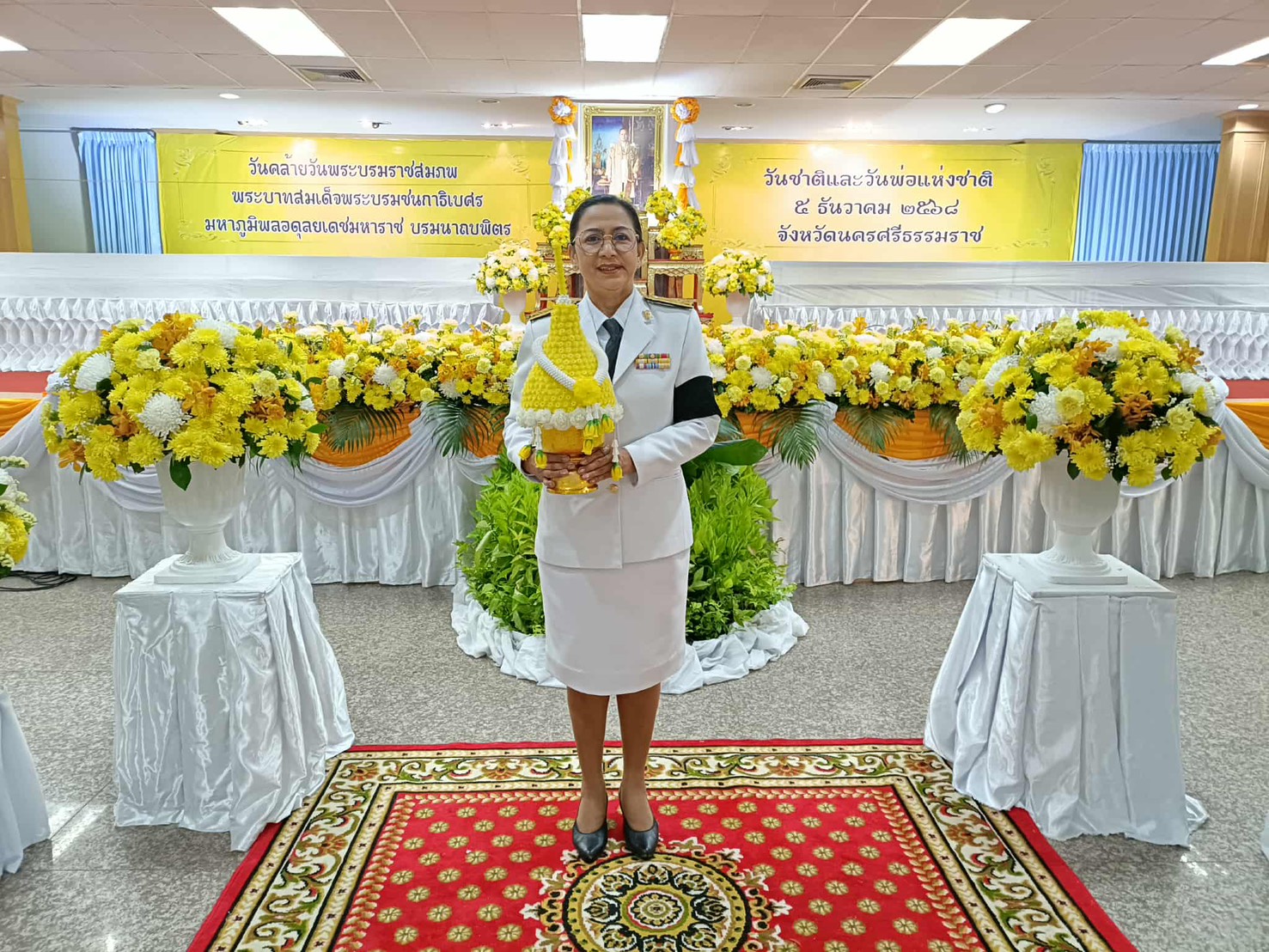 วันที่ 5 ธันวาคม 2568 เวลา 07.00 น. นางสาวพัชราพร ทวยสงฆ์ รองผู้อำนวยการกลุ่มบริหารงานกิจการนักเรียนโรงเรียนกัลยาณีศรีธรรมราช พร้อมด้วยคณะครู ร่วมพิธีเจริญพระพุทธมนต์ ทำบุญตักบาตรถวายพระราชกุศล และพิธีวางพานพุ่มดอกไม้ถวายราชสักการะ เนื่องในวันคล้ายวันพระบรมราชสมภพ พระบาทสมเด็จพระบรมชนกาธิเบศร มหาภูมิพลอดุลยเดชมหาราช บรมนาถบพิตร ตรงกับวันชาติ และวันพ่อแห่งชาติ 5 ธันวาคม 2568 เพื่อแสดงออกถึงความจงรักภักดีและน้อมสำนึกในพระมหากรุณาธิคุณอันหาที่สุดมิได้ โดยมี นายสมชาย ลีหล้าน้อย ผู้ว่าราชการจังหวัดนครศรีธรรมราช เป็นประธานในพิธี ณ ศาลาประชาคมโรงละครองค์การบริหารส่วนจังหวัดนครศรีธรรมราช