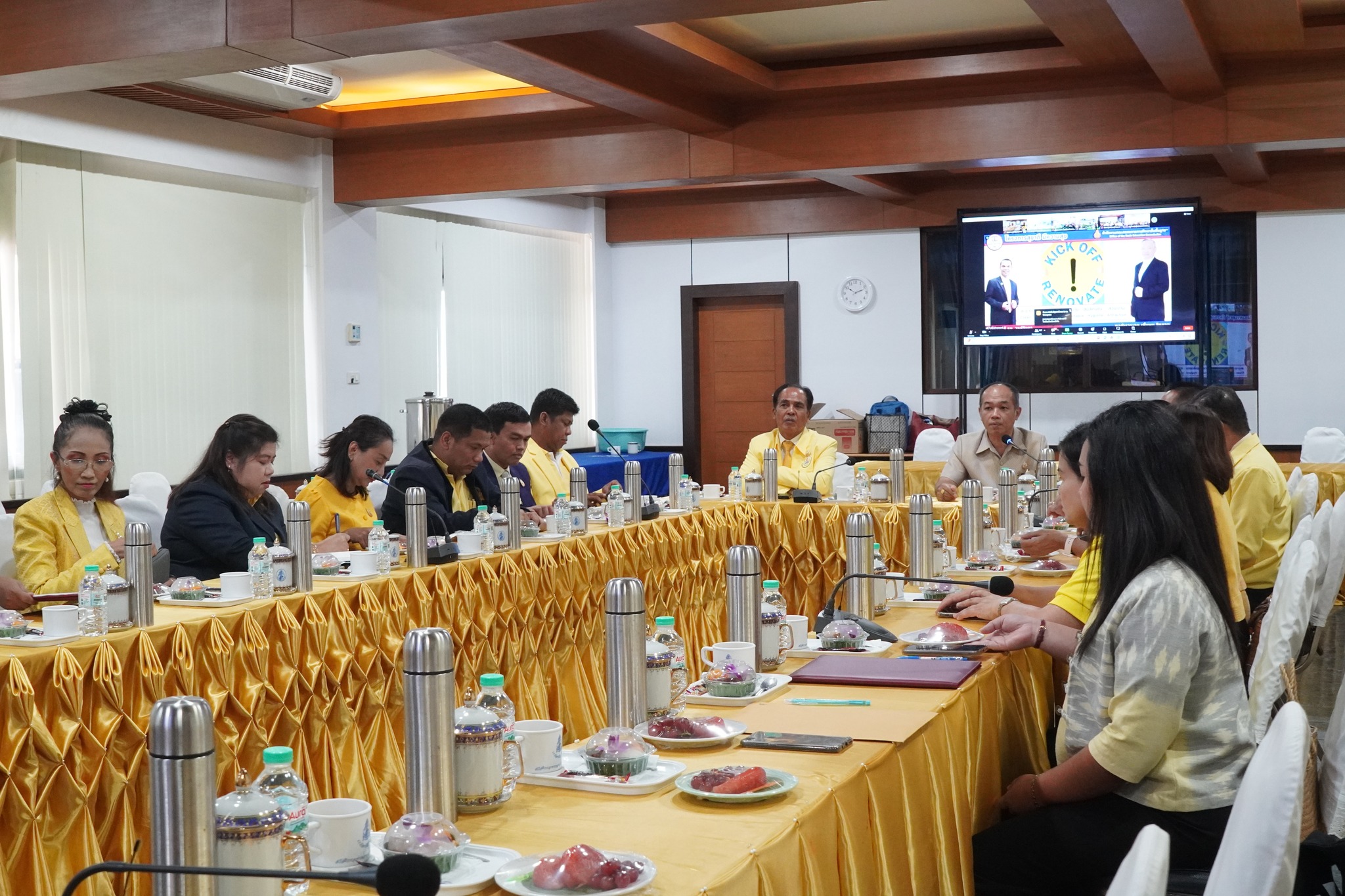 วันที่ ๖ พฤษภาคม ๒๕๖๗ นายสง่า นาวารัตน์ ผู้อำนวยการโรงเรียนกัลยาณีศรีธรรมราช กล่าวต้อนรับ ดร.ปชานนท์ ชนะราวี และ ดร.วิมพ์วิภา รักสม รองผู้อำนวยการสำนักงานเขตพื้นที่การศึกษามัธยมศึกษานครศรีธรรมราช พร้อมด้วยบุคลากรในสังกัด ผู้เข้าร่วมพิธีเปิดกิจกรรม Kick Off โครงการ “สุขาดี มีความสุข” ของสำนักงานคณะกรรมการการศึกษาขั้นพื้นฐาน (สพฐ.) ผ่านระบบออนไลน์ Zoom Meeting ถ่ายทอดสัญญาณจากโรงเรียนวัดเมตารางค์ สำนักงานเขตพื้นที่การศึกษาประถมศึกษาปทุมธานี เขต ๑ โดยได้รับเกียรติจาก พลตำรวจเอก เพิ่มพูน ชิดชอบ รัฐมนตรีว่าการกระทรวงศึกษาธิการ เป็นประธานเปิดกิจกรรม พร้อมด้วยผู้บริหารระดับสูง สพฐ. เข้าร่วมกิจกรรมในครั้งนี้
