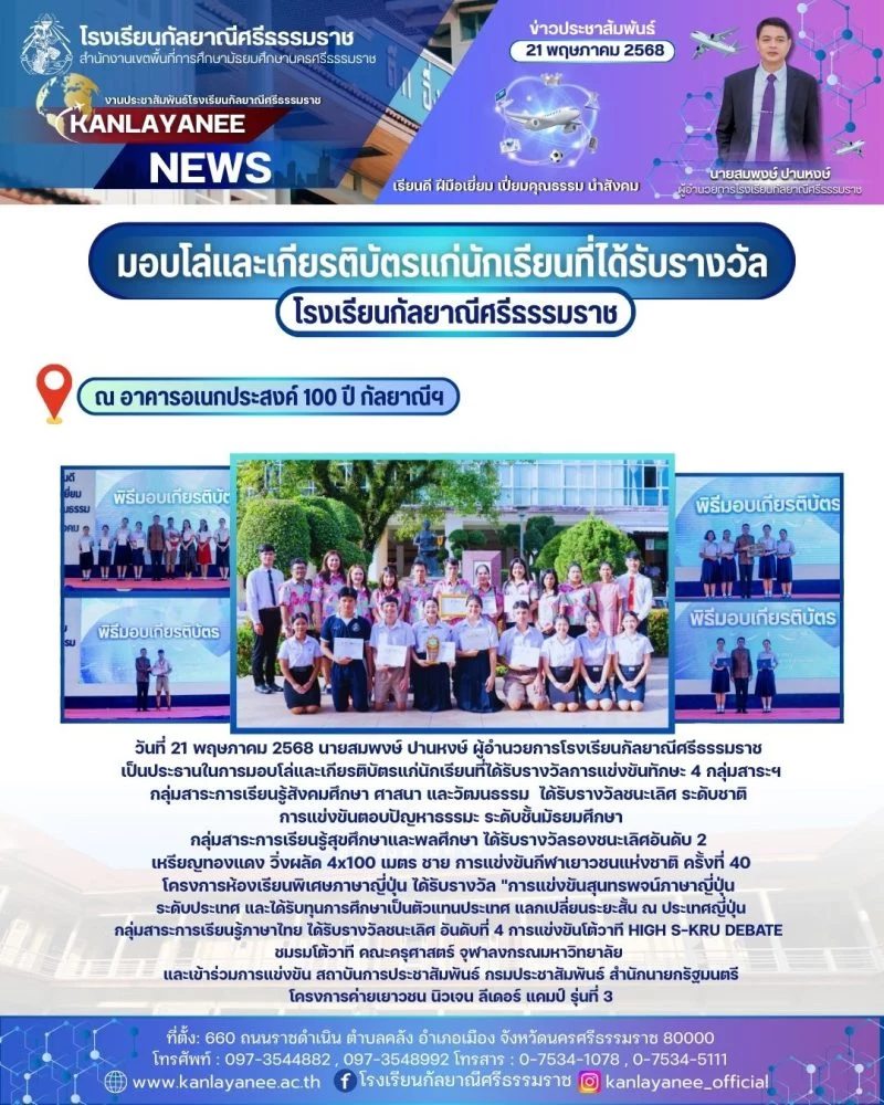 มอบโล่และเกียรติบัตรแก่นักเรียนที่ได้รับรางวัล