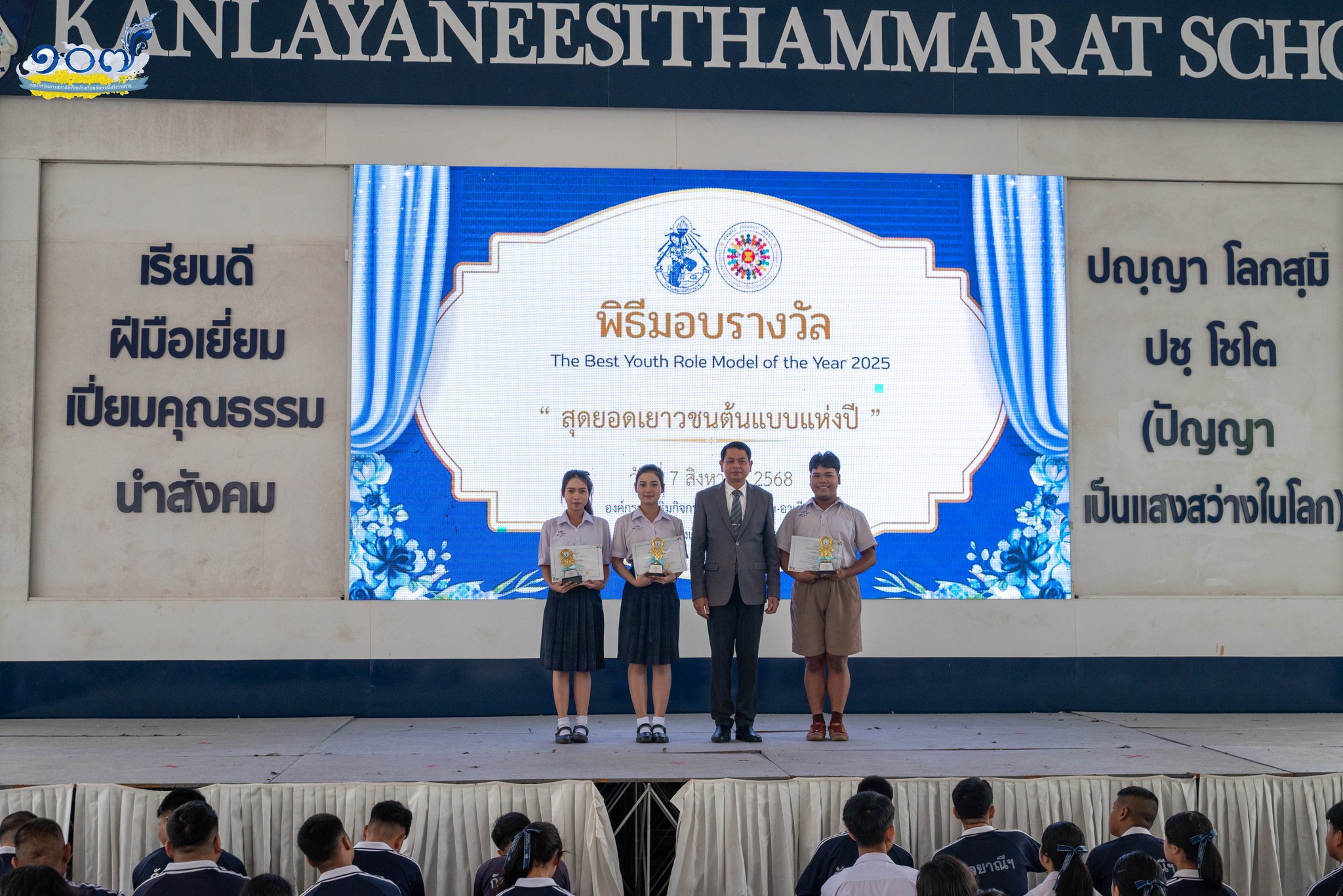 วันที่ 7 สิงหาคม 2568 นักเรียนโรงเรียนกัลยาณีศรีธรรมราช ที่เข้าร่วมการแข่งขันในรายการภาษาไทย เข้ารับเกียรติบัตร The Best Youth Role Model of the Year 2025 ณ อาคารหลังคาคลุมอเนกประสงค์ 100 ปี กัลยาณีศรีธรรมราช