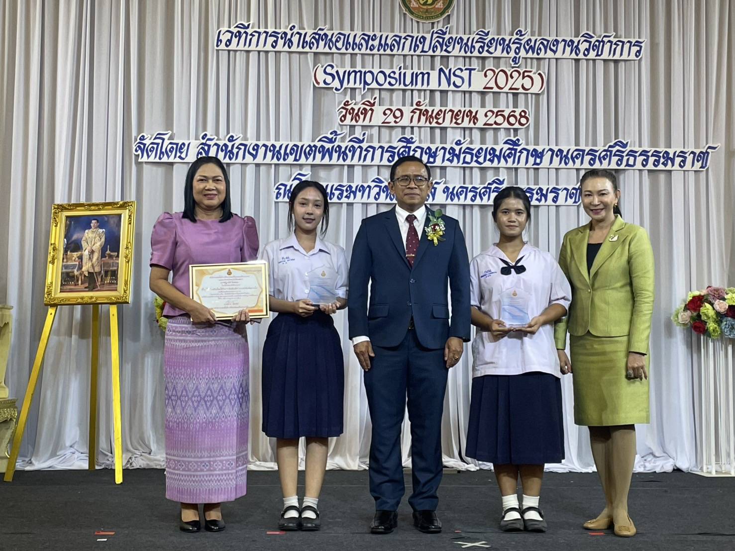 วันที่ 29 กันยายน 2568 นักเรียนโรงเรียนกัลยาณีศรีธรรมราช รับโล่รางวัลชนะเลิศการแข่งขันคัดลายมือ กิจกรรมรักษ์ภาษาไทย เนื่องในสัปดาห์วันภาษาไทยแห่งชาติ ปี 2568 ภายใต้โครงการยกระดับคุณภาพการศึกษาสู่ความเป็นเลิศ โดยมี ดร.สุภาพ เต็มรัตน์ ผู้อำนวยการสำนักงานเขตพื้นที่การศึกษามัธยมศึกษานครศรีธรรมราช เป็นประธานในพิธีและมอบโล่รางวัล ณ โรงแรมทวินโลตัส นครศรีธรรมราช