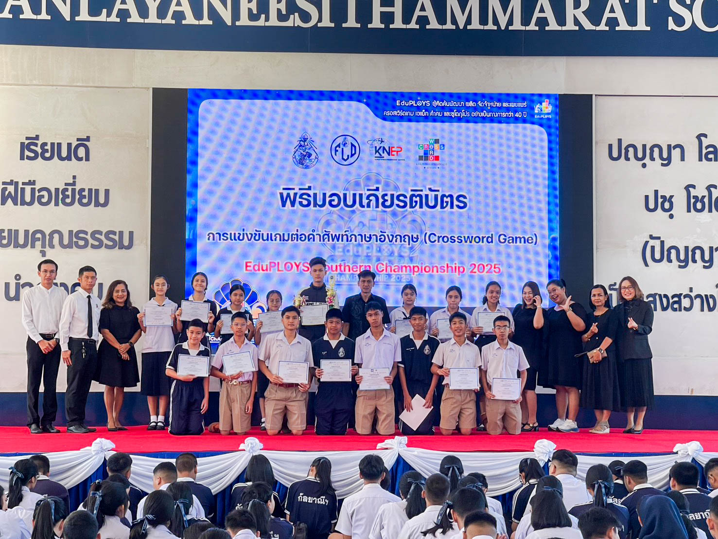 วันที่ 2 ธันวาคม 2568 เวลา 08.00 น. นายสมพงษ์ ปานหงษ์ ผู้อำนวยการโรงเรียนกัลยาณีศรีธรรมราช มอบหมายให้นายเรืองศักดิ์ สุพงษ์วิบูลพันธ์ รองผู้อำนวยการกลุ่มบริหารงานวิชาการ เป็นประธานในพิธีมอบเกียรติบัตร แก่นักเรียนที่ได้รับรางวัล ณ อาคารอเนกประสงค์ 100 ปี กัลยาณีศรีธรรมราช