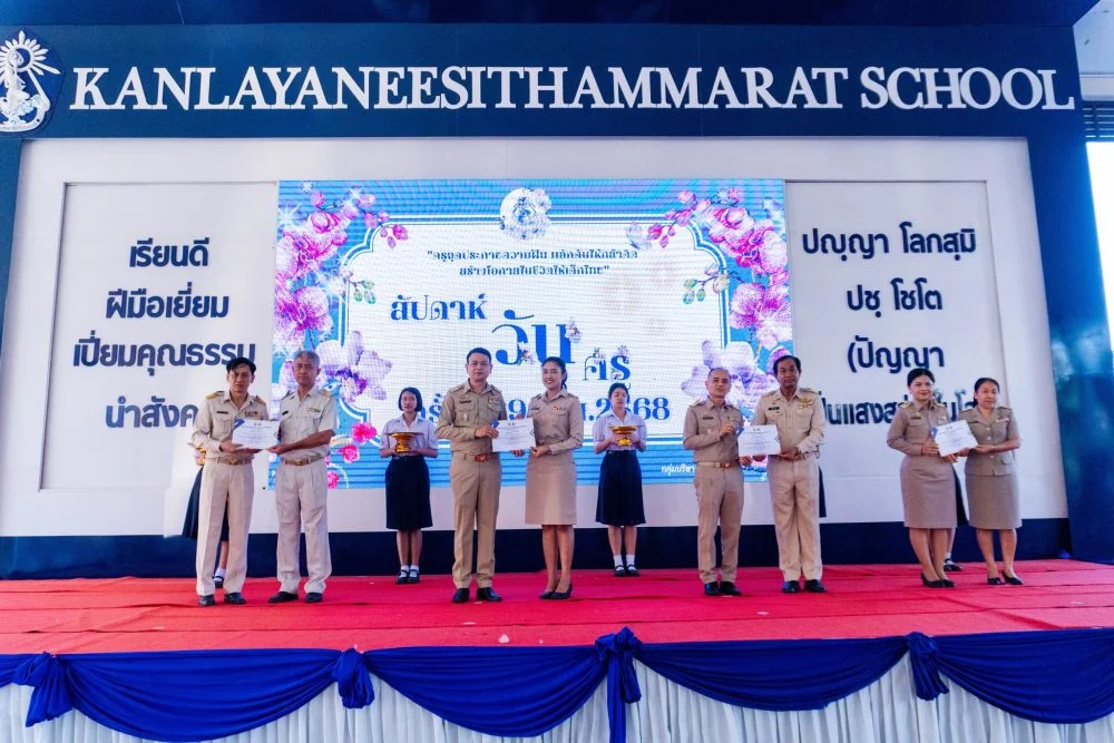 วันที่ ๓ กุมภาพันธ์ ๒๕๖๘ เวลา ๐๘.๐๐ น. นายสมพงษ์ ปานหงษ์ ผู้อำนวยการโรงเรียนกัลยาณีศรีธรรมราช เป็นประธานในพิธีมอบเกียรติบัตรแก่ผู้บริหาร คณะครู ที่ได้รับรางวัลวิธีปฏิบัติที่เปนเลิศ (Best Practices) และนักเรียนที่ได้รับรางวัลการแข่งขันทักษะกลุ่มสาระการเรียนรู้ภาษาไทย กลุ่มศิลปะพื้นบ้าน ระดับเขตพื้นที่การศึกษามัธยมศึกษานครศรีธรรมราช ประจำปีการศึกษา ๒๕๖๗ ณ อาคารอเนกประสงค์ ๑๐๐ ปี กัลยาณีฯ