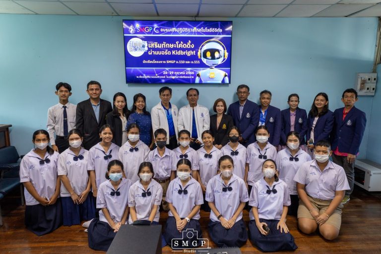 กิจกรรมเด่น โครงการอบรมเชิงปฏิบัติการเทคโนโลยีดิจิทัล ในหลักสูตร “เสริมทักษะโค้ดดิ้ง ผ่านบอร์ด Kidbright”สำหรับนักเรียนความสามารถพิเศษวิทยาศาสตร์-คณิตศาสตร์ (SMGP) ระดับชั้น ม.129 ตุลาคม 256629 ตุลาคม 2023
