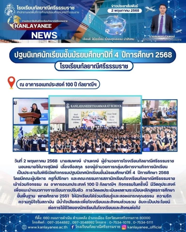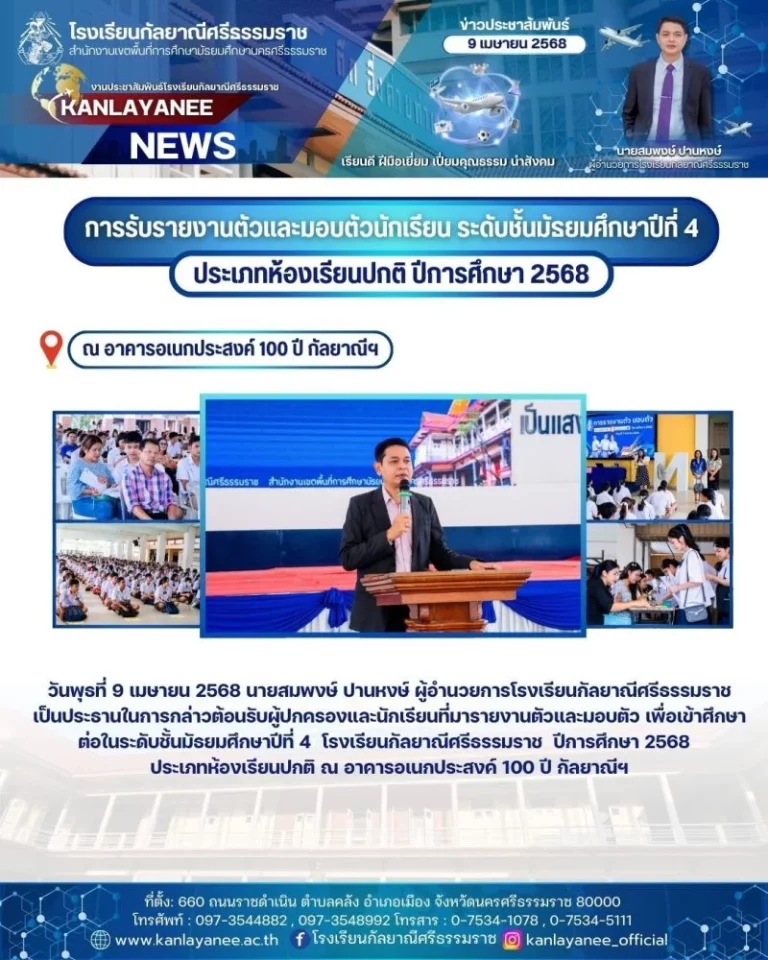 kanlayanee_new การรับรายงานตัวและมอบตัวนักเรียน ระดับชั้น ม.4 ห้องเรียนปกติ9 เมษายน 25683 พฤษภาคม 2025
