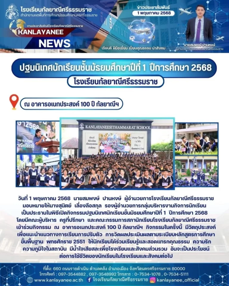 kanlayanee_new การรับรายงานตัวและมอบตัวนักเรียน ระดับชั้น ม.1 ห้องเรียนปกติ8 เมษายน 25683 พฤษภาคม 2025